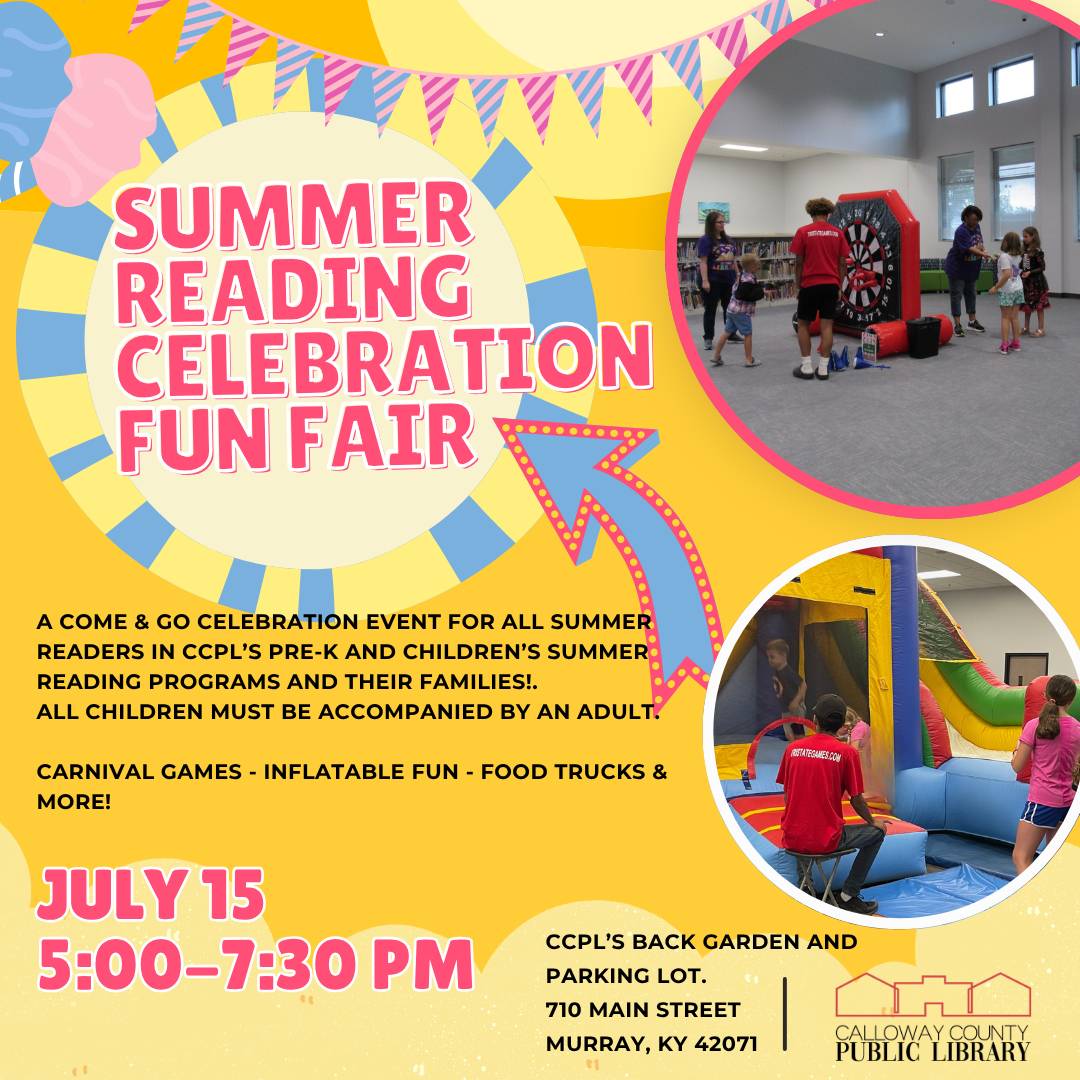 A Come & Go Celebration Event for ALL Summer Readers in CCPL's Pre-K and Children's Summer Reading Programs and their families.
