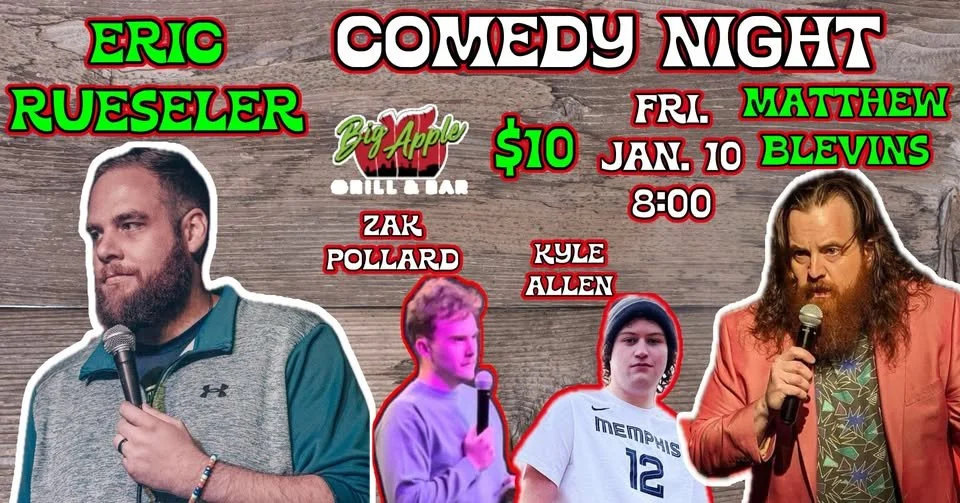 Kick off the new year with some laughter as we bring back our comedy night with not one but two headliners Eric Rueseler and Matthew Blevins.