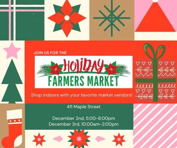 The best time of year is upon us and we know you cannot wait to see some of your favorite farmers market vendors! Shop indoors this weekend at 411 Maple Street. Hosted by the Murray Family Church, we know you will find some great gifts for your loved ones!