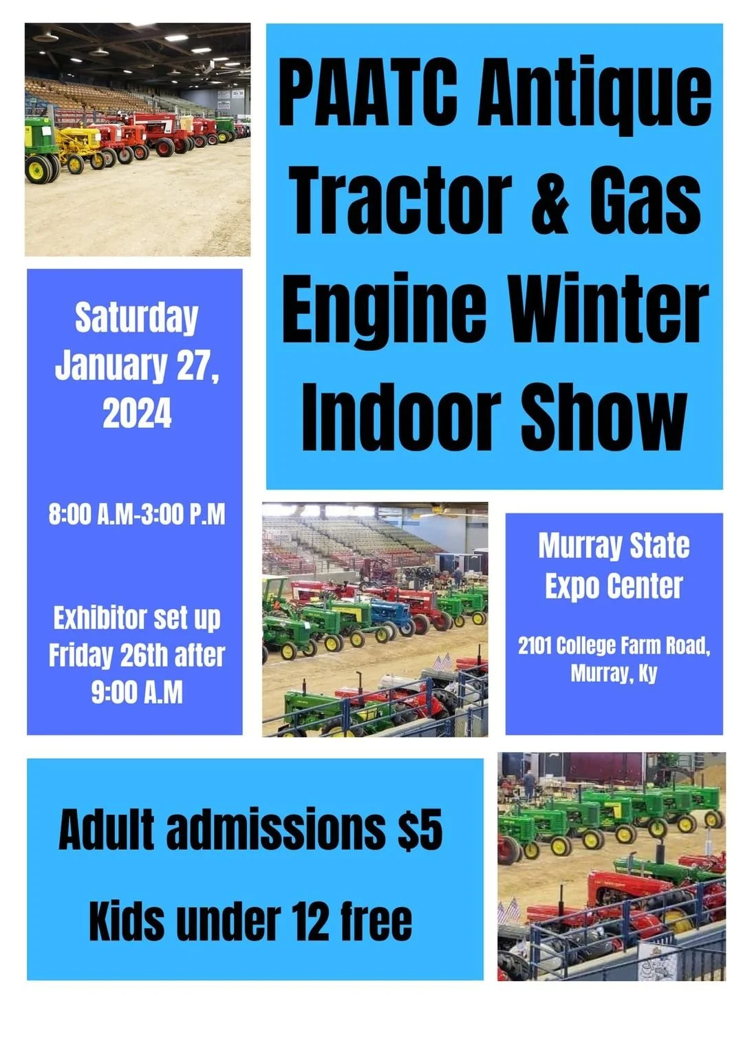 PAATC Tractor Show @ Cherry Expo Center Saturday, January 27, 2024 8:00 AM 5:00 PM MSU Exposition Center 2101 College Farm Road Murray, KY, 42071 United States (map) Google Calendar ICS