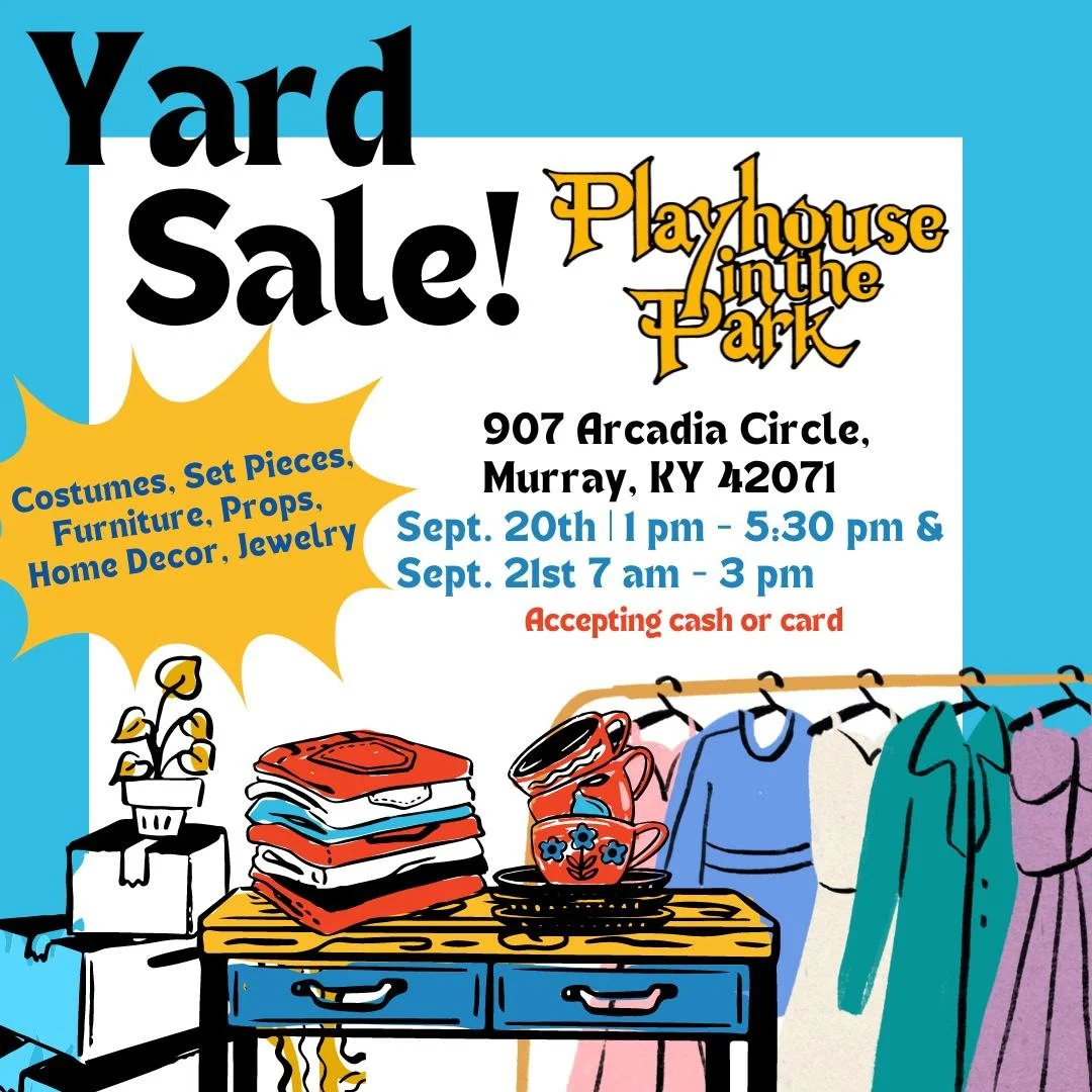 We are participating in the Murray's Citywide Yard Sale on September 20th & 21st! We will have costumes, set pieces, furniture, home decor, jewelry, etc. We will be set up at Playhouse's Annex, located at 907 Arcadia Circle, Murray, KY.