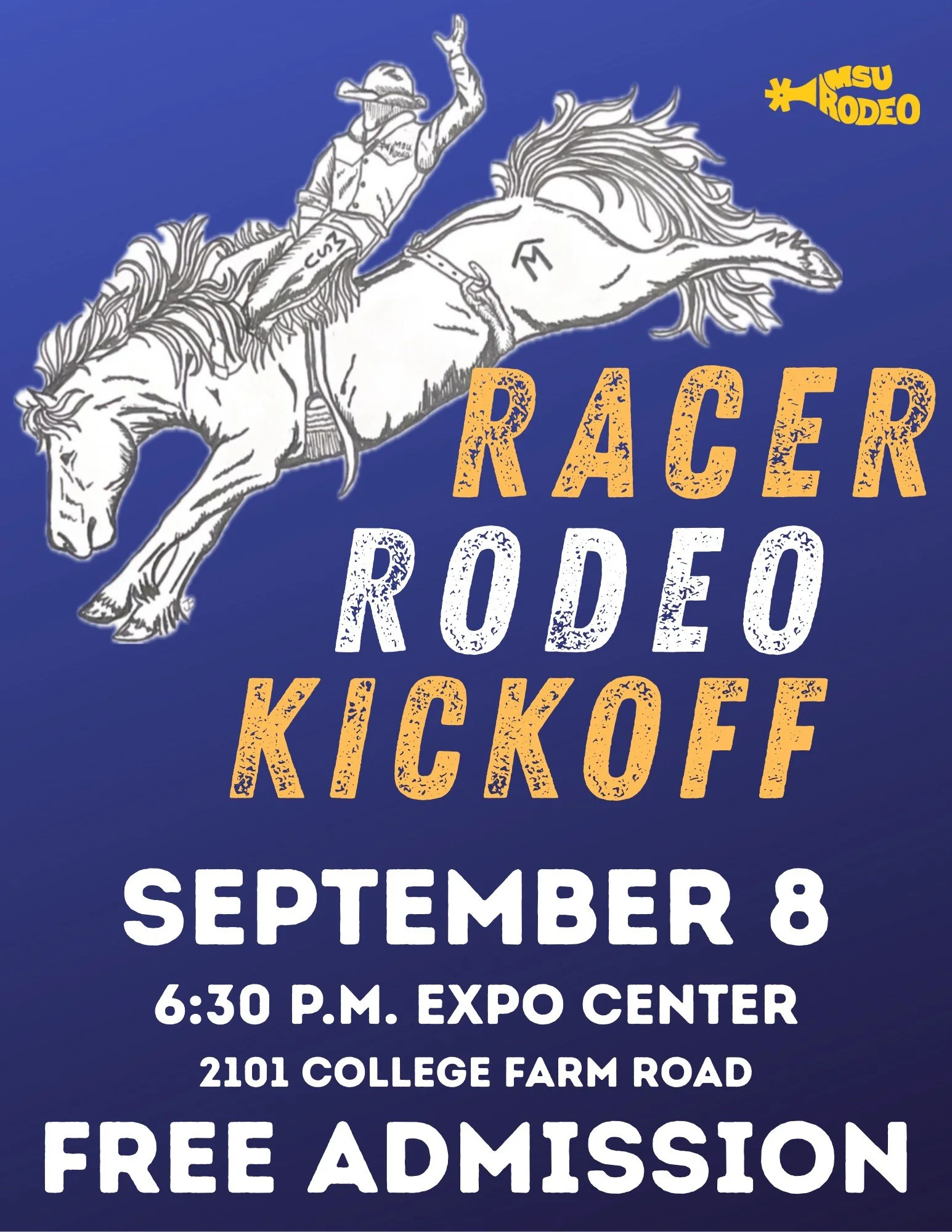 Back to All Events Racer Rodeo Kick-Off Monday, September 8, 2025 6:30 PM 9:30 PM 2101 College Farm Road Murray, KY, 42071 United States (map) Google Calendar ICS
