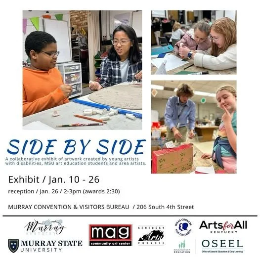 With a grant from Arts for All Kentucky, Murray Art Guild and Murray State University partnered once again to offer the Side by Side program for children with disabilities. Side by Side is designed to make creative opportunities available to students, fee-free, to reinforce inclusiveness and positive self-image, and highlight the importance of visual arts education to the development of young people with disabilities.