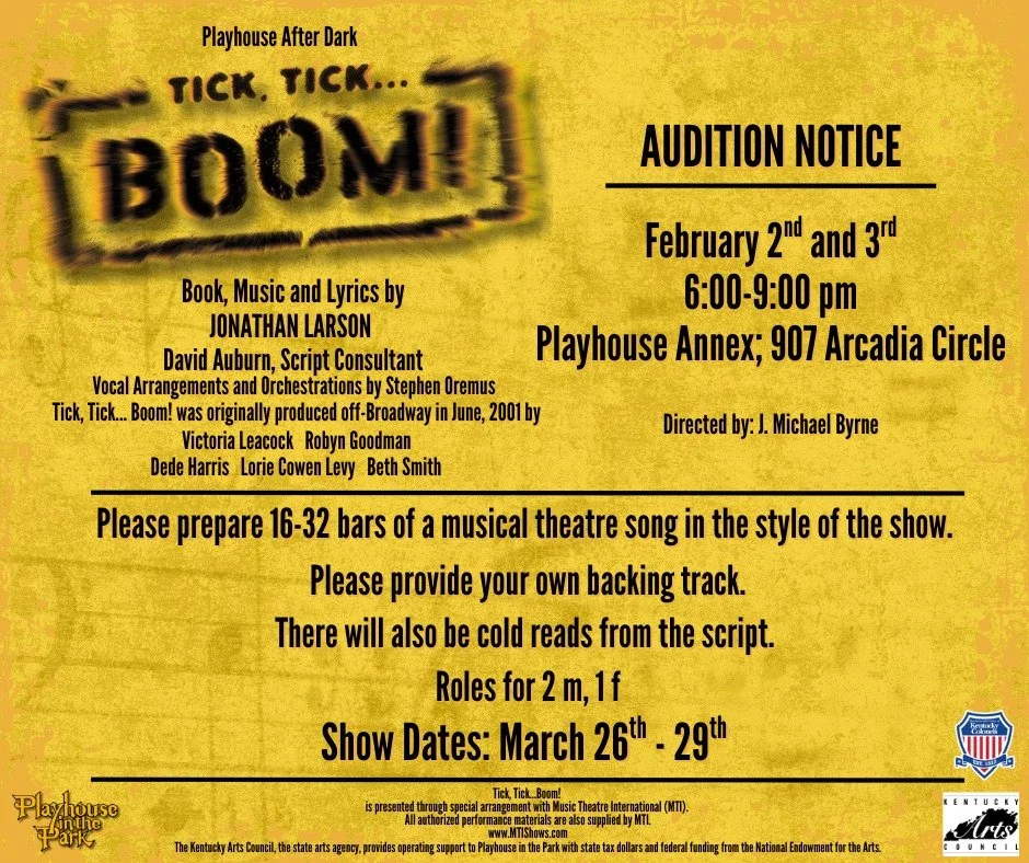Playhouse in the Park’s After Dark series is thrilled to announce auditions for Tick, Tick… BOOM!