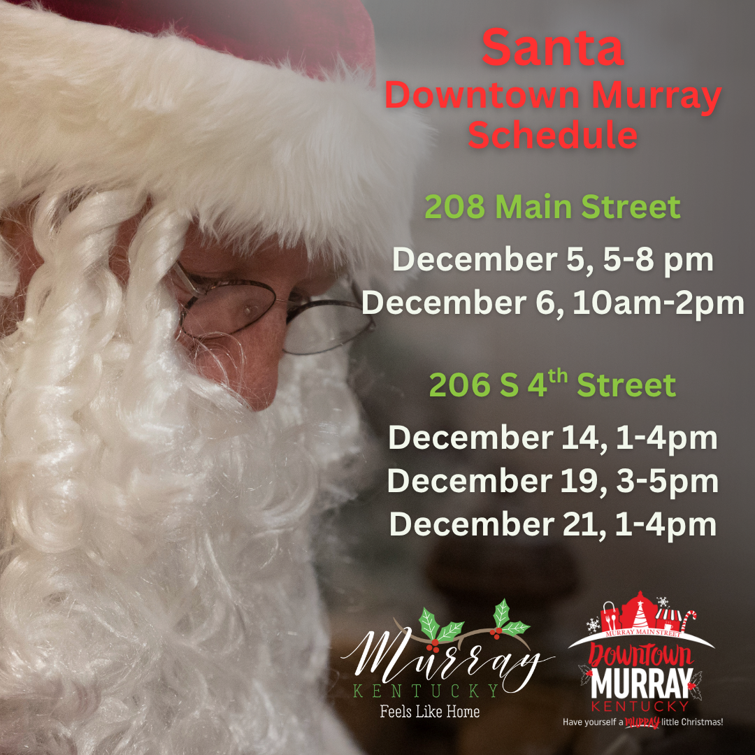 Visit with Santa at the Murray CVB! Don’t forget to drop your letter to Santa in the mailbox outside the office!