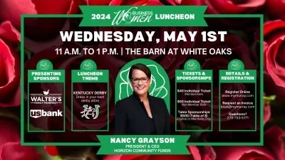 We are thrilled to announce Nancy Grayson as our keynote speaker for the 2024 Women in Business Luncheon! Nancy is President & CEO of Horizon Community Funds of Northern Kentucky, where she implements the vision and strategic direction of the organization to serve the community's needs. A recognized leader, Nancy has received numerous awards for her contributions, including the Cincinnati Enquirer Woman of the Year Award (2022) and the Northern Kentucky Chamber of Commerce Outstanding Women of Northern Kentucky Award (2021). Join us on May 1st to hear Nancy share her inspiring insights!